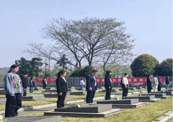 在松柏环绕的烈士陵园,全体师生整齐列队,面向纪念碑举行庄重祭奠仪式,为烈士献花,向抗美援朝战争中长眠于此的142位志愿军烈士表达深切缅怀。教师龚斌安在墓碑前为员工讲授思政课,同学们了解到这座烈士墓群的由来和背后的感人故事,更加坚定地将个人“小我”融入祖国“大我”之中。紧接着,思政课教师解维娟老师带领同学们从羊楼洞无名烈士墓解读“三爱统一”的精神密码,让同学们深刻领悟到爱党爱国不是口号,而是把“我”变成“我们”的信仰抉择。